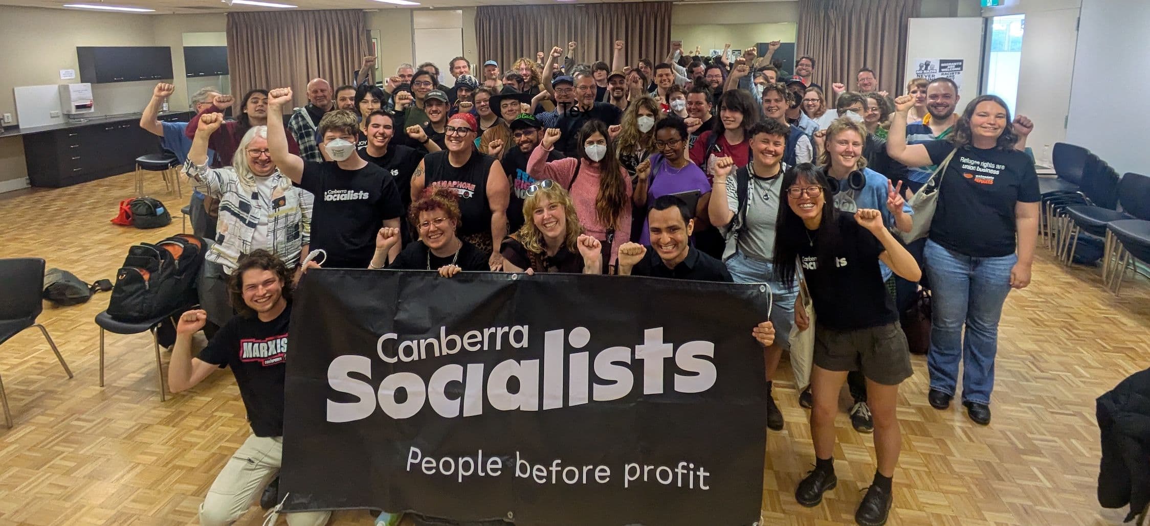 Canberra Socialists is a new party looking to shake up politics. We are dedicated to rebuilding a movement that will stand up for workers' rights, against racism, and demand real climate action. We should have a society where every person is guaranteed what we need to live a dignified life: secure housing, healthcare, education.